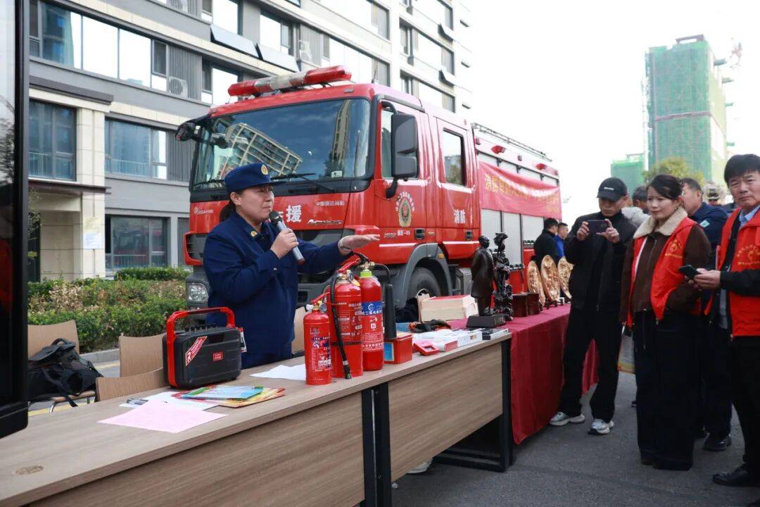 活动中,物业经理首先分享了小区消防安全建设经验,围绕消防通道97国际官方网址管理、设施维护、居民安全教育等内容展开交流。随后,消防指战员现场进行了破拆工具操作、高空救援模拟、消防车水炮喷射等救援科目展示,充分展现了“全灾种、大应急”背景下的综合应急救援能力,赢得阵阵掌97国际官方网址声。在器材讲解区,宣传人员详细介绍灭火器、灭火毯、防毒面罩等常见消防器材的使用方法,并指导参会人员现场操作演练。