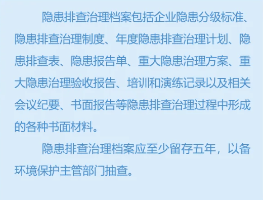 《指南》要求企业可参照上述标准、结合自身风险等级等实际情况,确定本企业的隐患分级标准,并在隐患档案中标明每个隐患的级别。