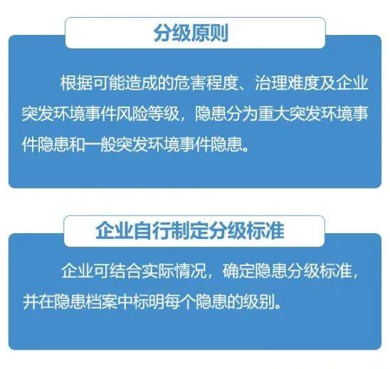 突发环境事件隐患的级别与隐患可能导致的突发环境事件的危害程度和治理难度相关,《指南》将隐患分为重大隐患和一般隐患。